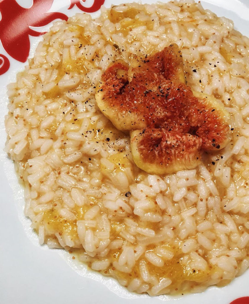 • aggiungere i fichi, neri e ben maturi, tagliati in quattro parti (3 fichi per ogni porzione di risotto)